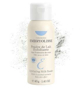 This is not your typical scrub. It starts as a fine powder then turns into a milky foam with water. It uses coconut derived ingredients to exfoliate very softly and leaves that “baby skin” effect without irritation.